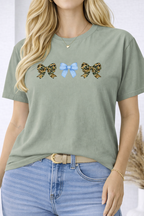 Camo & Blue Bow Women’s Graphic Tee (Comfort Colors)